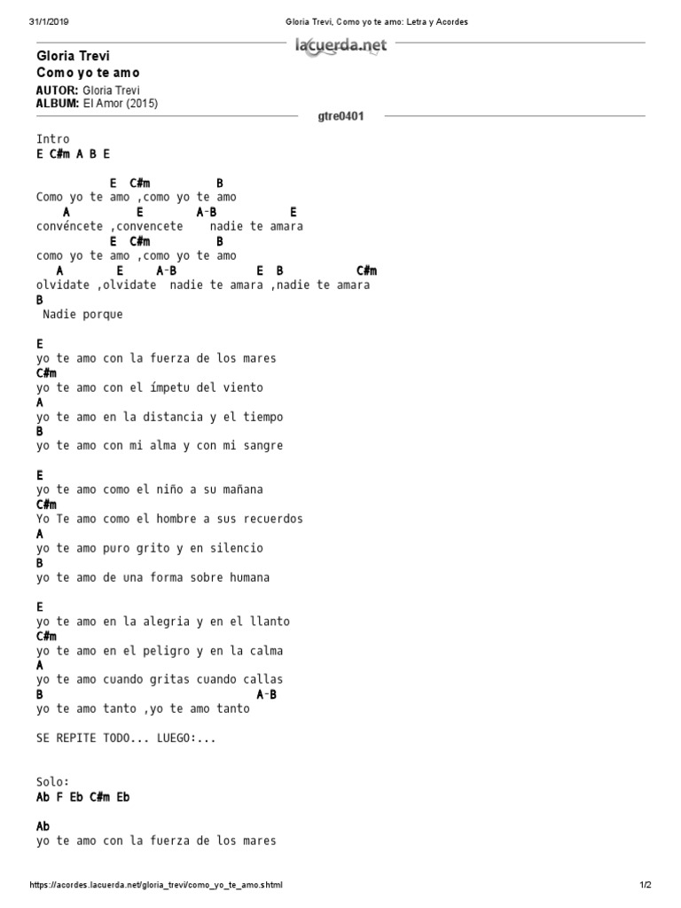 Gloria Trevi Como Yo Te Amo Letra Y Acordes Pdf
